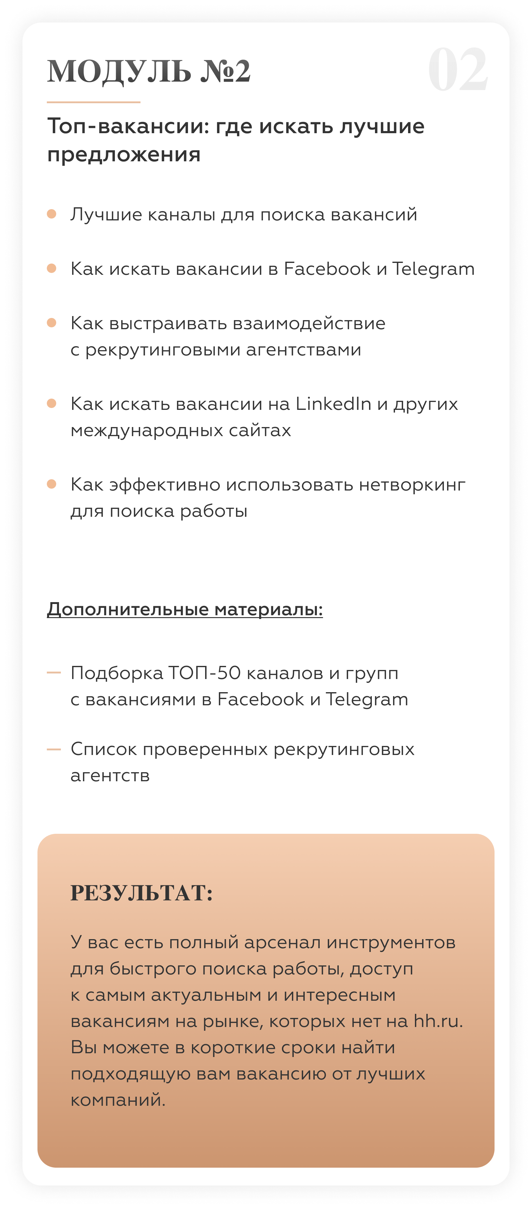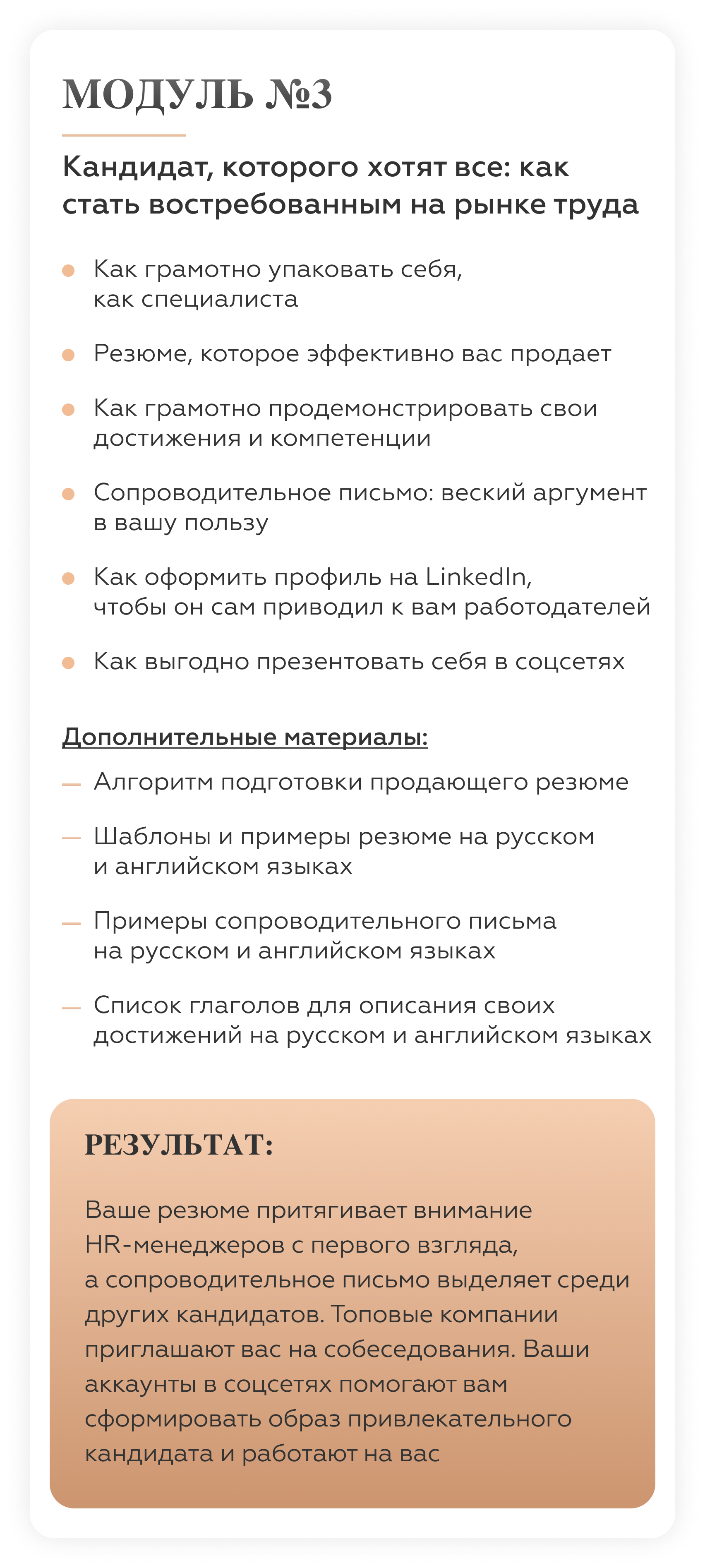 Мы специально построили курс таким образом, чтобы вам было комфортно совмещать его с обычной жизнью. Уроки длятся от 15 до 45 минут, их можно смотреть в любое время на любом устройстве. На выполнение домашних заданий понадобится, в среднем, 30 минут. По нашему опыту, даже у самых занятых участников получается найти 1,5-2 часа в неделю на обучение.