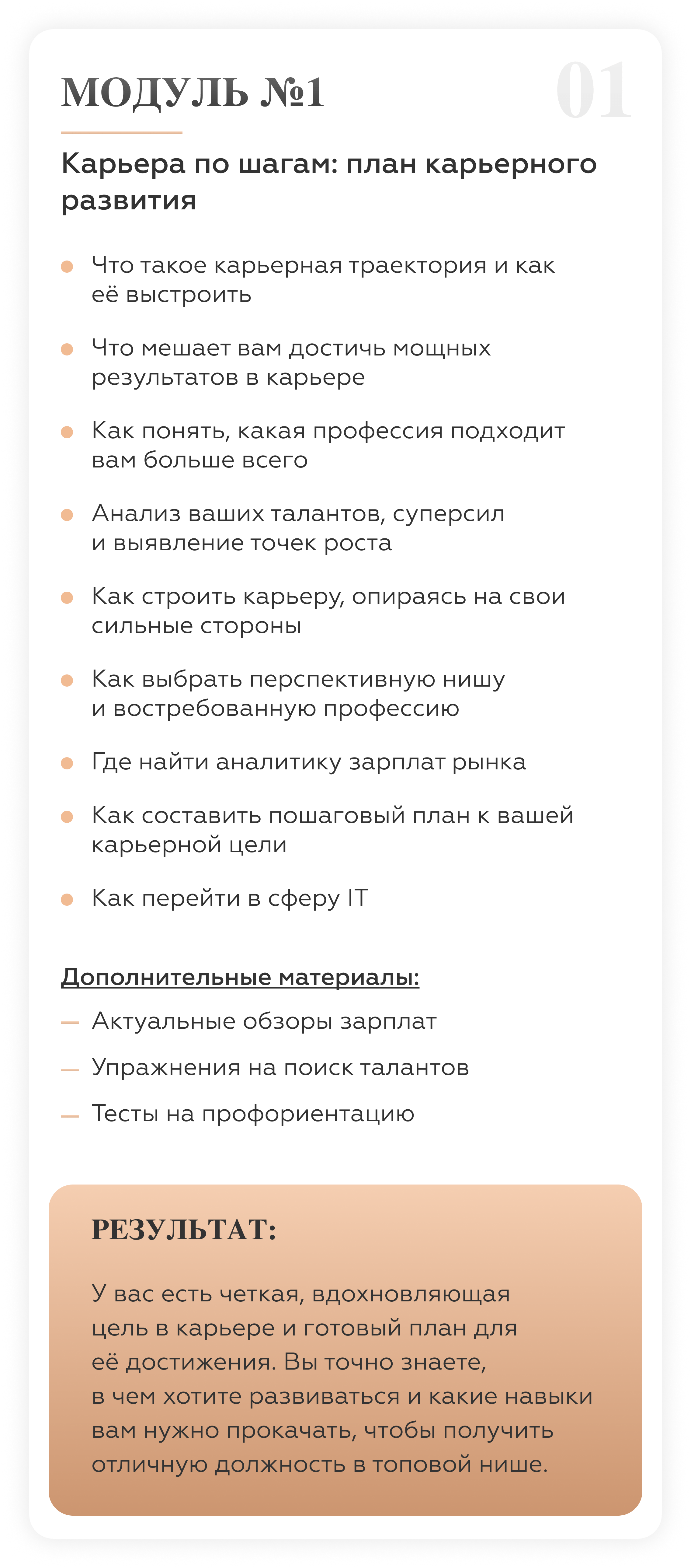 Мы специально построили курс таким образом, чтобы вам было комфортно совмещать его с обычной жизнью. Уроки длятся от 15 до 45 минут, их можно смотреть в любое время на любом устройстве. На выполнение домашних заданий понадобится, в среднем, 30 минут. По нашему опыту, даже у самых занятых участников получается найти 1,5-2 часа в неделю на обучение.