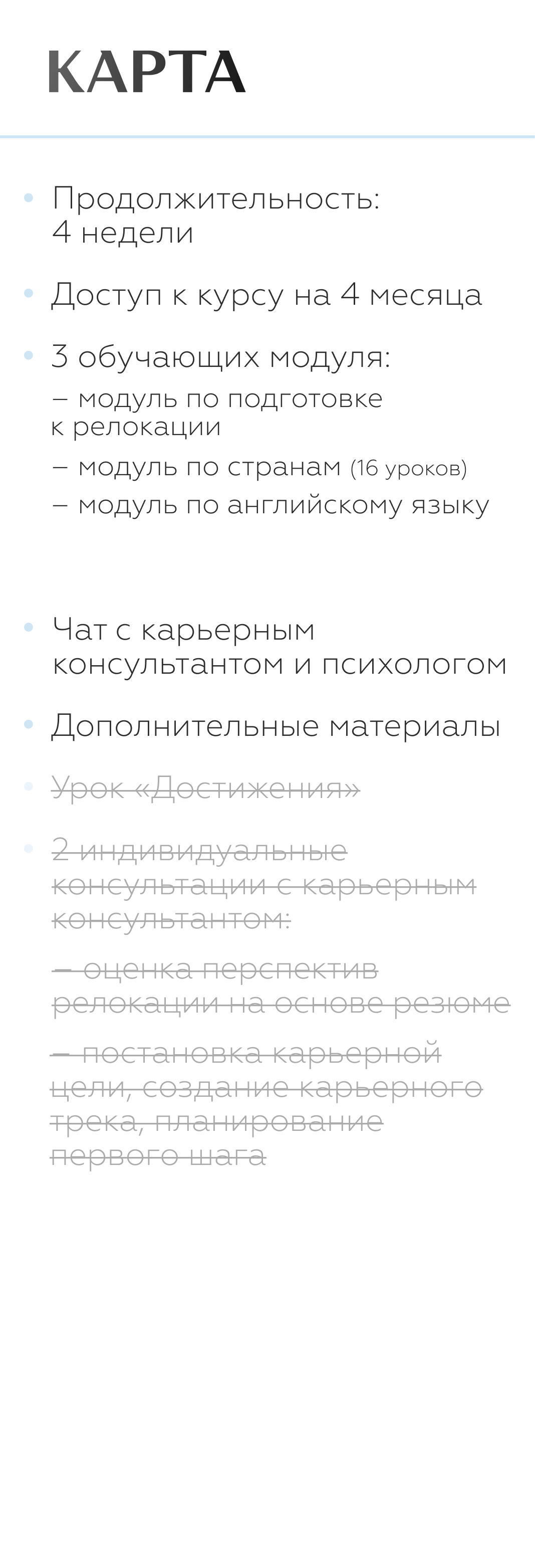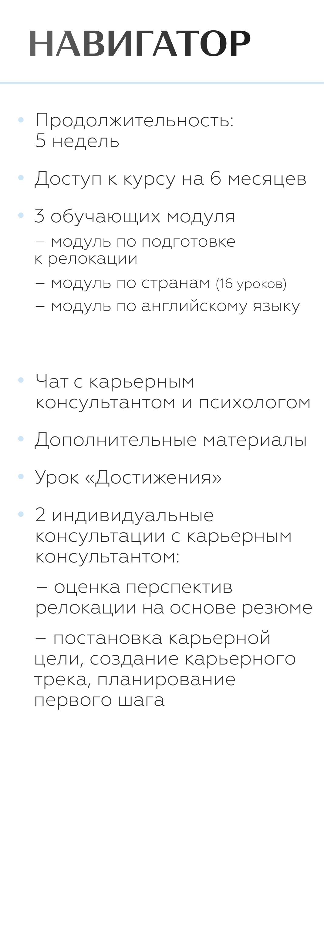Будем честны: этого вам не может обещать никто, так как многое при поиске работы зависит от вас. Если вам дают 100% гарантию, вас осознанно вводят в заблуждение. Мы со своей стороны гарантируем, что у вас будет полный арсенал знаний и инструментов для поиска вакансий за границей и прохождения всех этапов отбора, а также навыки эффективного позиционирования себя как перспективного кандидата, понимание, как «упаковывать» свои навыки и опыт.