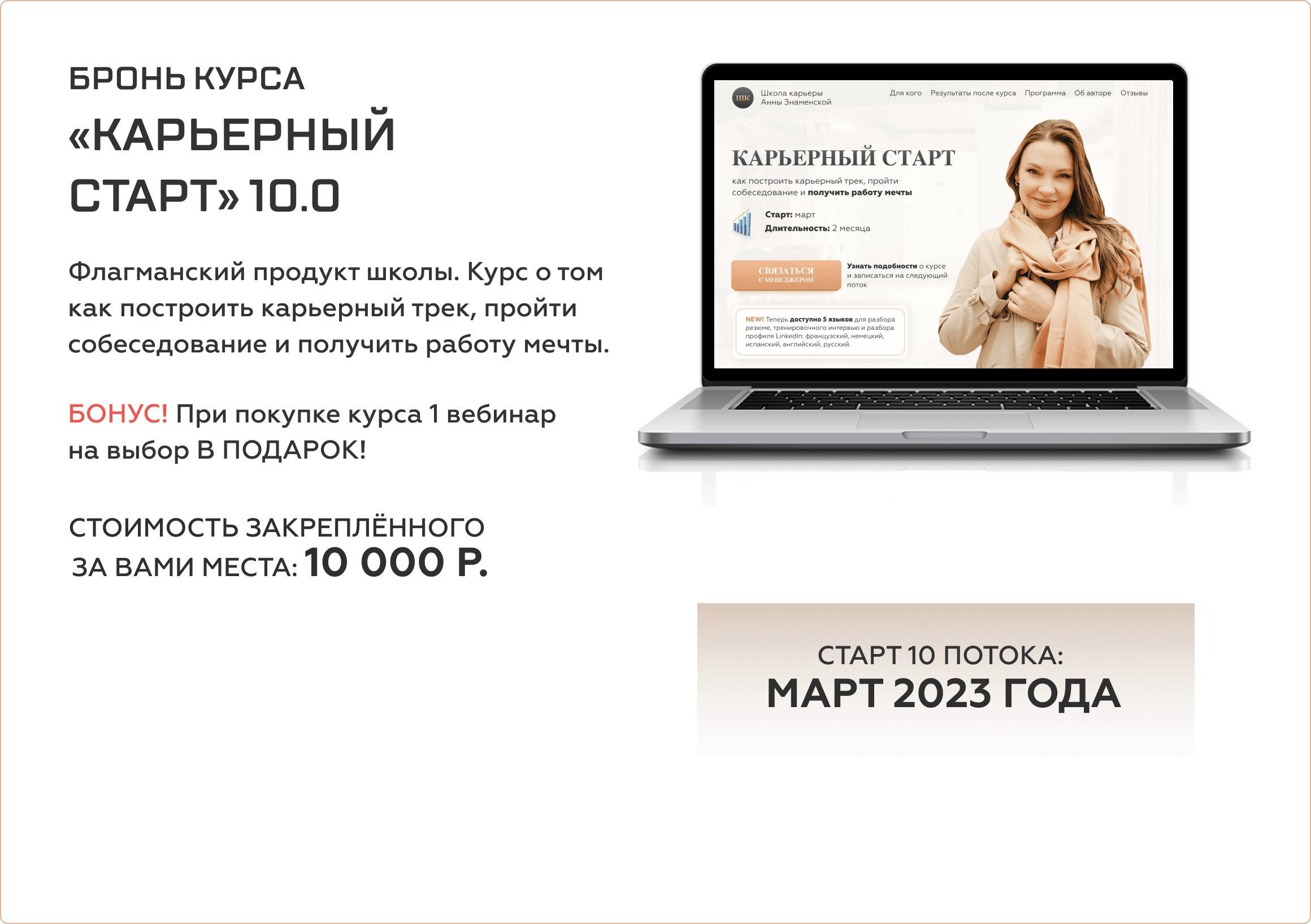 Анна делится своим опытом, опытом 1800 своих учеников и привлекает лучших специалистов из разных сфер, чтобы вы могли строить свою карьеру максимально эффективно!