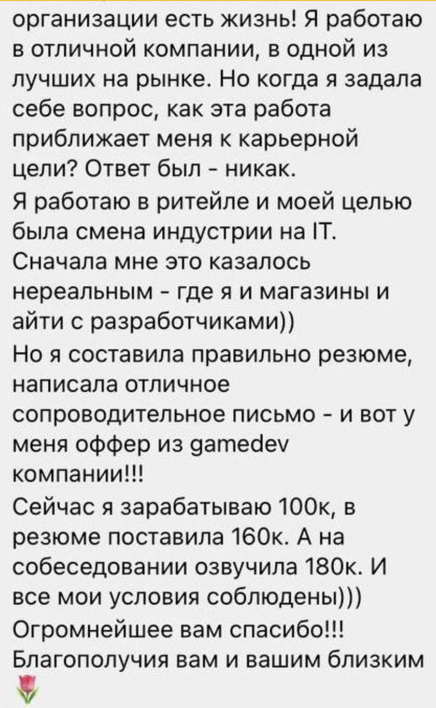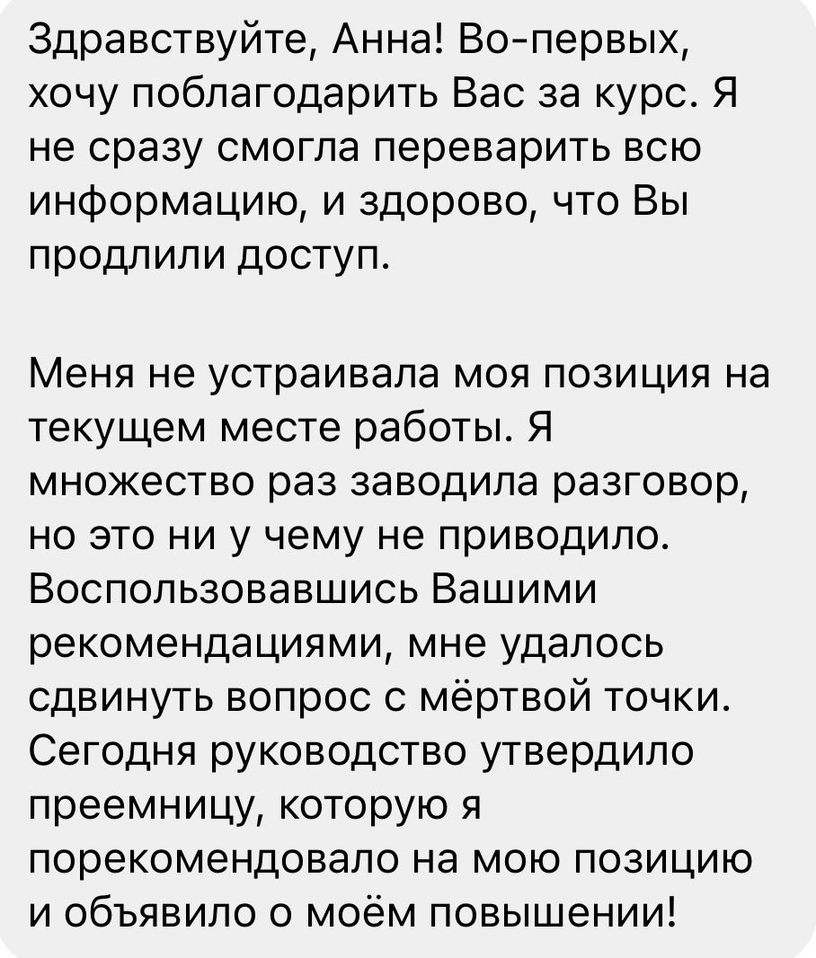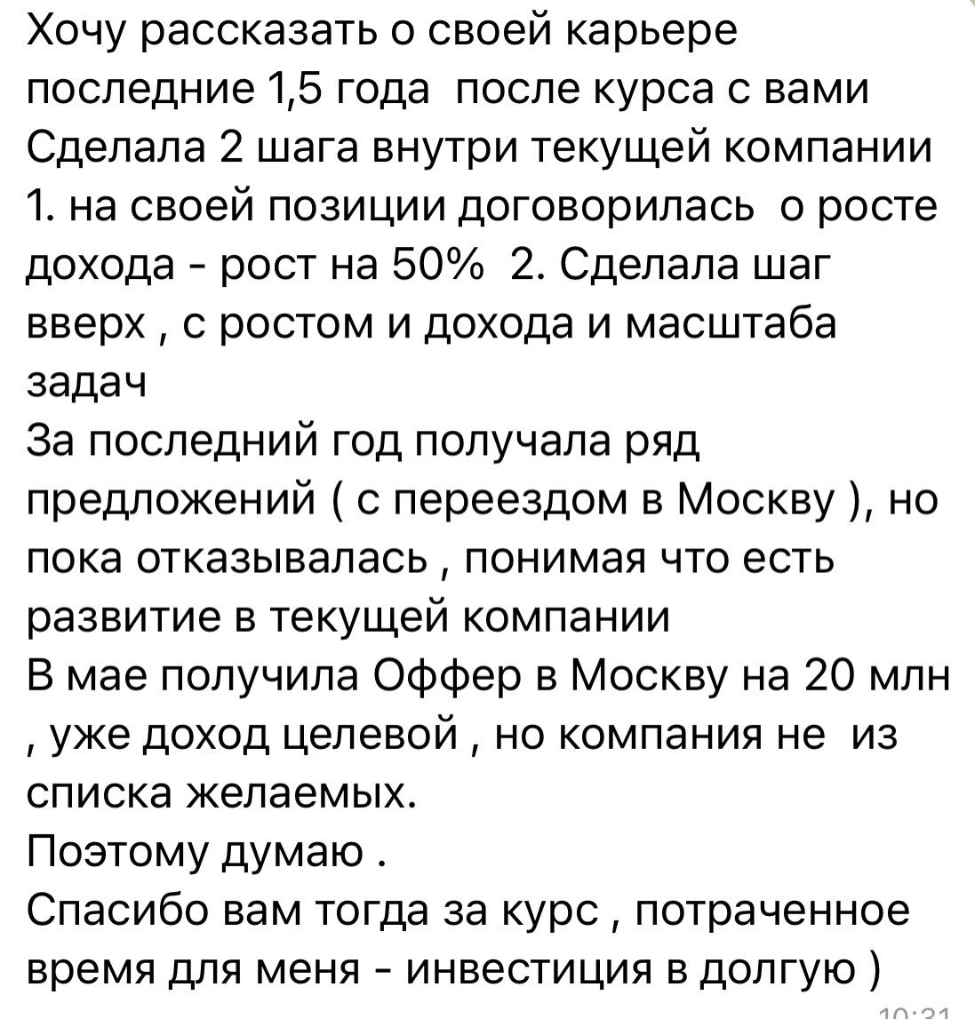 - Найдете и сформулируете свои достижения, научитесь их эффектно презентовать, чтобы получить оффер на более высокую позицию